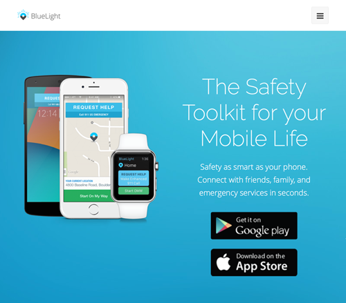 Homepage for BlueLight website with overview of the product