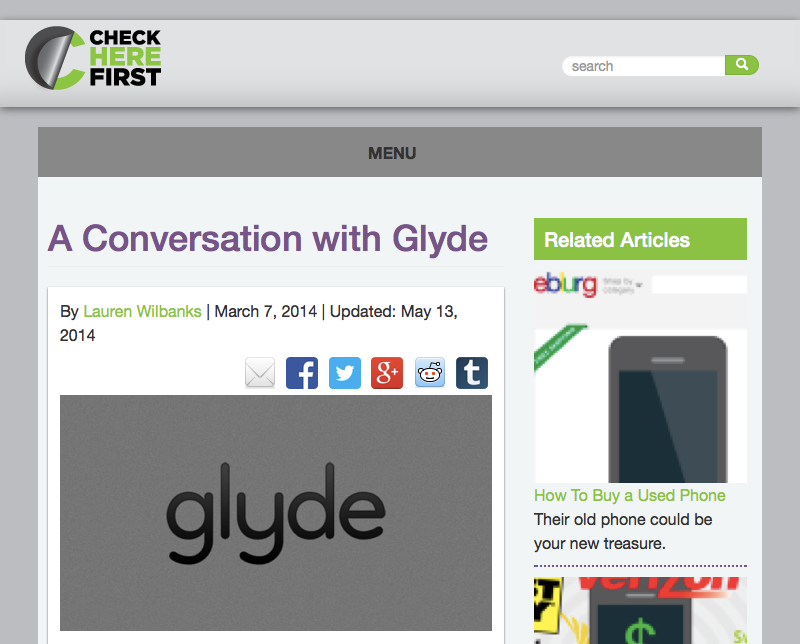 Interview in Checkherefirst featuring the CEO and COO of Glyde, a marketplace for consumer electronics